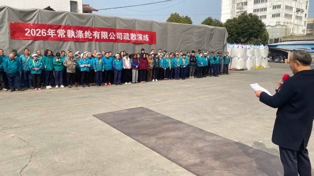 Changshu Polyester Co., Ltd. järjesti hätäevakuointiharjoituksen helmikuun 11. päivänä turvallisuustuotannon lain ja hätäharjoituksen asiaa koskevien vaatimusten täytäntöönpanemiseksi sekä työntekijöiden evakuointi- ja poistumismahdollisuuksien parantamiseksi tulipalon sattuessa. Polyesteridivisioona ja Lida-divisioona suorittivat harjoituksen asianmukaisesti kello 12:00 ja 13:00 samana päivänä, ja harjoitukseen osallistui yhteensä 357 työntekijää molemmista divisioonoista.